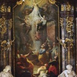 Das Hochaltarbild zeigt die Darstellung der Himmelfahrt Mariens, gemalt von Josef Adam Mölk. Während Maria bereits, von Engeln getragen in den Himmel entschwebt, haben die Apostel, die um das leere Grab versammelt sind, noch nicht vollends das Wunder erfasst - überrascht, zum Teil bestürzt, blicken sie um sich.